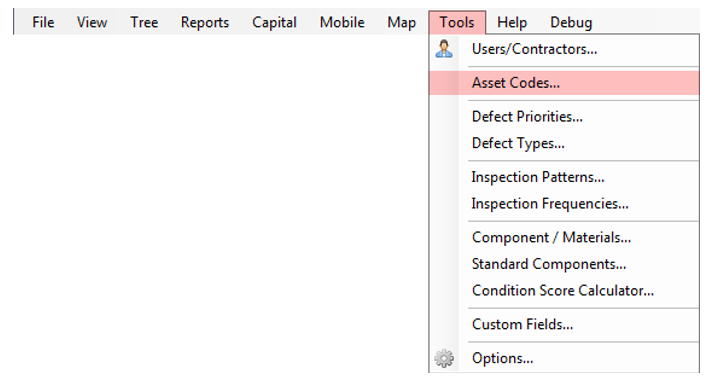 To alter codes or add new codes, click the Tools > Asset Codes menu item.