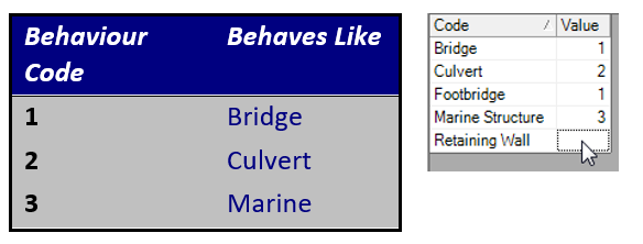 For example, you may want the “footbridge” asset class to behave like a bridge, so you would enter the number 1 into the value column.