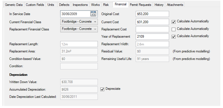 AssetAsyst helps you to manage the financial aspect of your assets. The Asset Information form contains a financial tab. This tab contains information relating to replacement cost, estimated life, and depreciation.