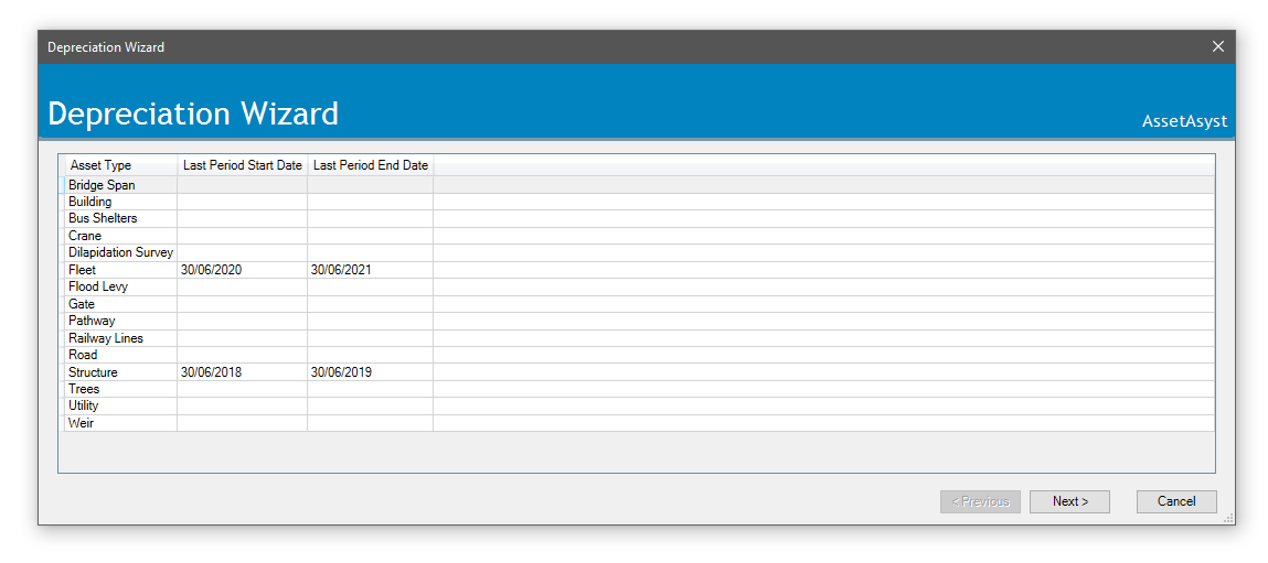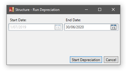 Once revaluation is complete, AssetAsyst will determine the appropriate start and end dates for this period. If the software is unable to suggest a start date, the controls will be editable.