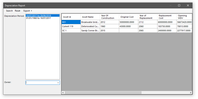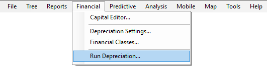 The AssetAsyst depreciation module operates at the asset level for point-based assets such as bridges, culverts and custom point assets. The module operates at the segment level for linear assets such as roads and pathways. To launch the depreciation wizard, Select Run Depreciation from the Finance menu.