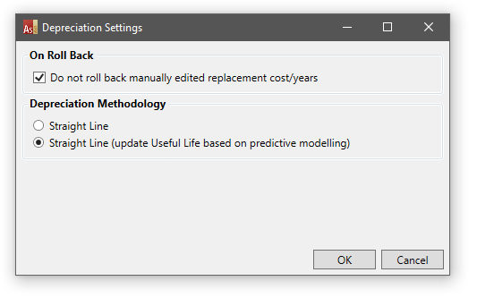 AssetAsyst® offers two methodologies for depreciation. The first is traditional straight-line depreciation. The second methodology leverages the power of the predictive modelling module.