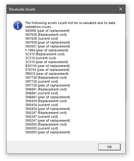 If some assets cannot be revaluated, the software will inform you of this, but the depreciation process will continue.