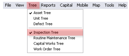 To access the inspection tree, click the Tree menu item and then Inspection Tree.