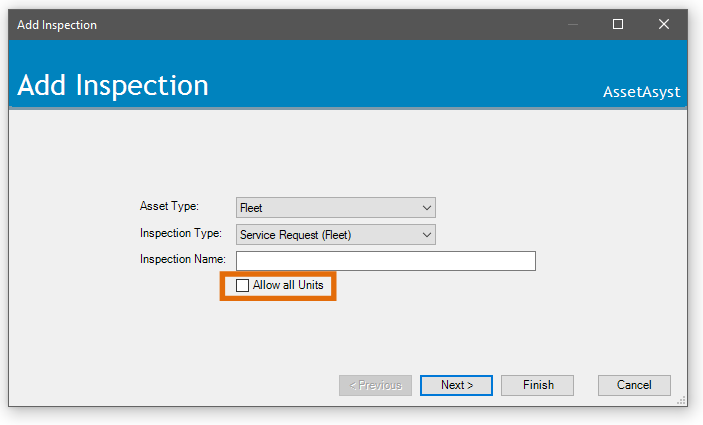 If you have already scheduled inspections in AssetAsyst®, or, are just starting out, you will be able to use the inspection wizard to schedule your new inspections.
