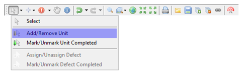 To add or remove units, choose Click the Select tool on the GIS toolbar (arrow icon). A menu will drop down. Click the Add/Remove Unit option. Select one or multiple assets to add into the inspection set.
