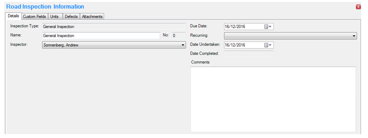 Finally the inspection can be set to be recurring. If the inspection is to be a recurring inspection, then a recurrence interval is also required to be set.