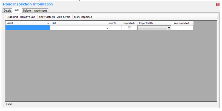 On simple inspections, inspected units can be marked off by filling out the appropriate details in the Units tab.