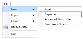 To create a new inspection, an inspection wizard is used, to access the Inspection Wizard open the menu File > New > Inspection.