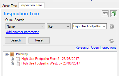 You can re-assign inspections with new due dates or inspectors directly from the inspection tree. Just filter the tree as you desire, then click the "Re-Assign Open Inspections" link.