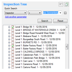 This tree displays information about activities like Inspections or Works Orders. There is a specialised type of inspection called a service request. By default, service requests are not shown in the tree. Tick the “View Service Request” check box to make them show up.