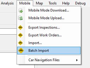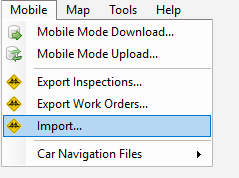 Once the package has been synced back to the server (or copied to the local computer) open the data transfer tool from the Mobile menu. Click Import from Inspection