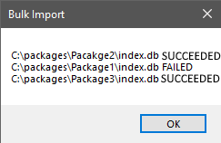 If there are any data errors while importing the package, an error screen will display as normal. At the end of the process, a summary will appear to detail which packages succeeded, and which failed.
