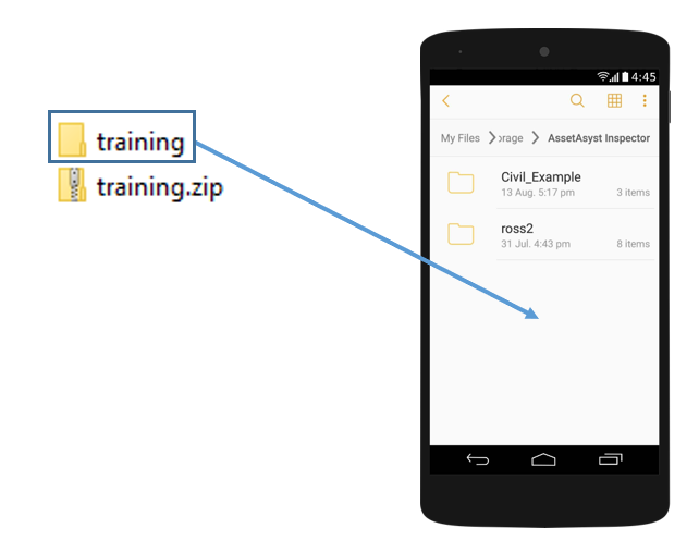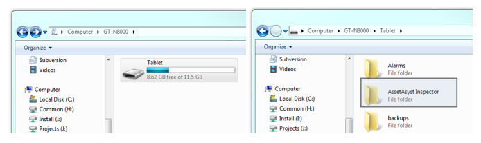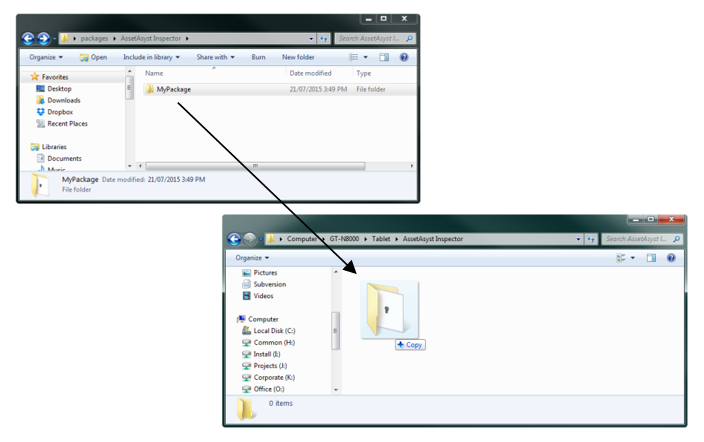 Open up your device and locate the “AssetAsyst® Inspector” folder. This is where you need to place your package. If this folder does not exist you can create it by right-clicking in the tablet window and choosing “New Folder”