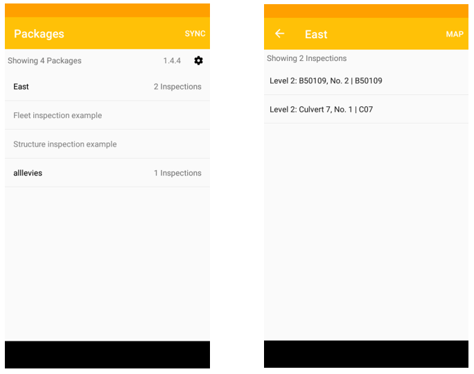 When you first launch the Inspector app you will be presented with a list of structure inspections. NOTE: If you have copied multiple packages, you will first see a package-selection page. Tap on an inspection to open it.