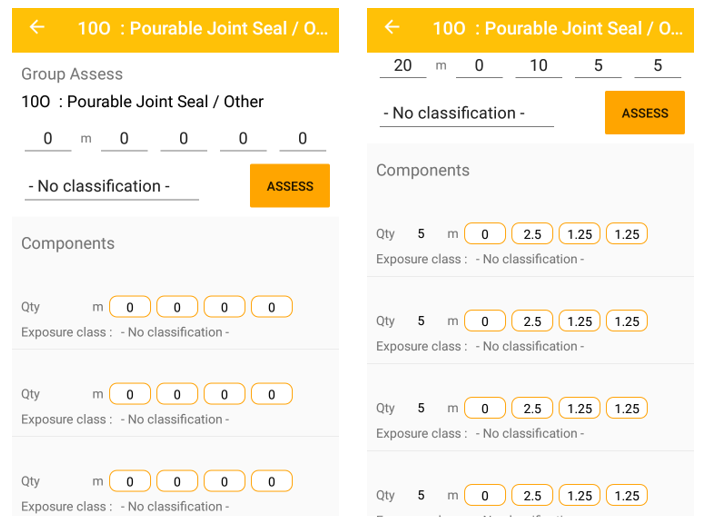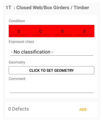 You will notice four text boxes with a red background. These boxes represent the quantity of the component that is in conditions 1, 2, 3 and 4. For assets using a Vicroads-based methodology, this number represents a percentage.