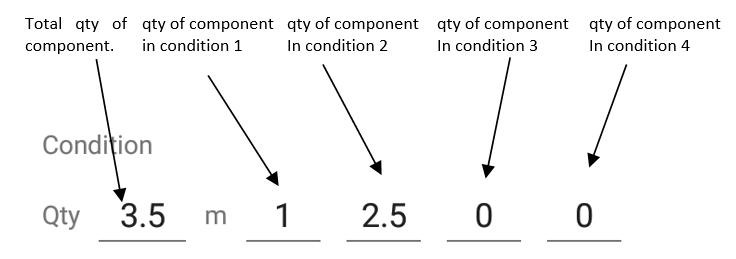 Condions 1,2,3 and 4 must add up to the total quantity of the component.