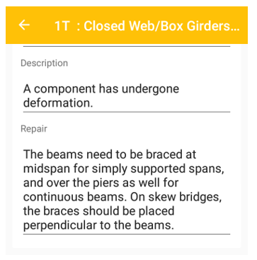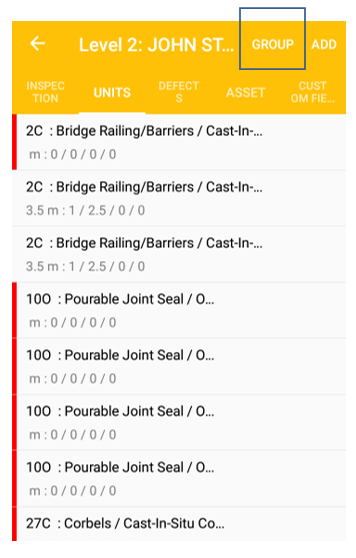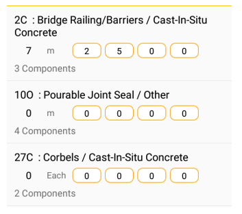 The Queensland TMR methodology requires that bridges be broken to a very fine degree. This can result in a very large number of components. Because of this, AssetAsyst Mobile offers an alternative grouping interface, which combines together multiple instances of the same component type under headings. Think of these headings as the equivalent VicRoads component, with the finer detail underneath.