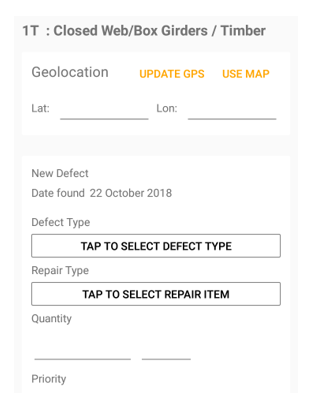 If this asset has previously been inspected using AssetAsyst® in the past then you may see existing outstanding defects found by the previous inspector. You can re-assess these defects by editing any fields that you see fit.