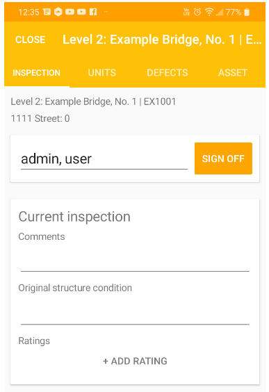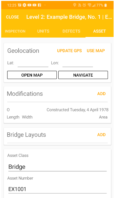 Using the “Asset” page, you can update the details of the asset being inspected.