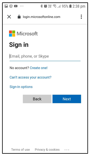 Log in using your Office 365 credentials. A Microsoft Office 365 account is required for using the sync process.