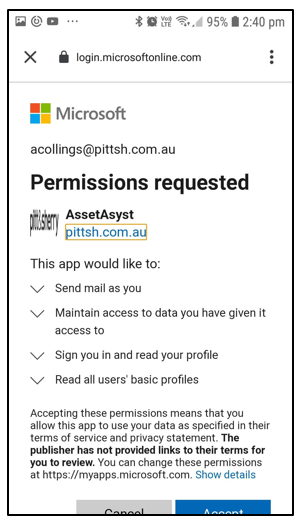 You may need to grant permission to the AssetAsyst Mobile app the first time.