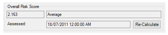 The Risk Score Calculator form is divided into two tabs. The first allows you to define the various parameters that drive the algorithm. The Weightings tab allows you to choose the relative importance of different parameters.