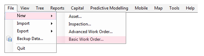 Click File > New > Basic Work Order to initiate the creation of a work order.