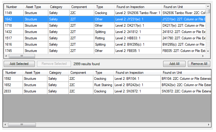 Then, click the “Add All” button, or select the desired defects and click the “Add Selected” button. The chosen defects will move from the top grid to the bottom grid.