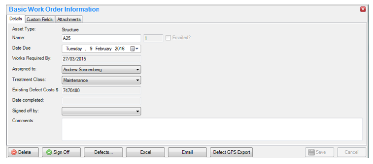 Following input of observed defects, Work Orders can be used to schedule rectification works to an individual or maintenance team.
