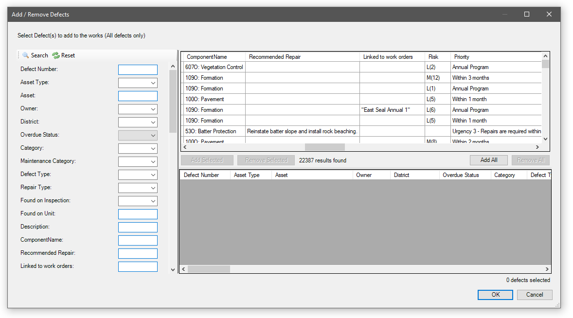 Click OK and the defects will be added to the basic work order.